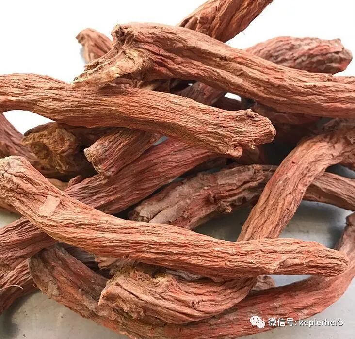 1、本品根茎短粗,顶端有时残留茎基。根数条,长圆柱形,略弯曲,有的分枝并具须状细根,长10~20cm,直径0.3~lcm。表面棕红色或暗棕红色,粗糙,具纵皱纹。老根外皮疏松,多显紫棕色,常呈鳞片状剥落。质硬而脆,断面疏松,有裂隙或略平整而致密,皮部棕红色,木部灰黄色或紫褐色,导管束黄白色,呈放射状排列。气微,味微苦涩。